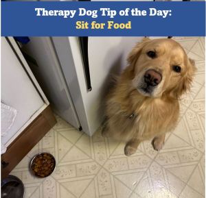 Training to sit for food teaches restraint and can start early in training. With me, momma started on my gotcha day, when I was a wee pup of 7 weeks. Every time she fed me, she’d put my little fuzzy butt into a sit, say “sit”, then say “Ok” & give me a gentle pat on the shoulder, and (finally!) let me have my food. She did this over and over, every time she fed me, and it didn’t take long for me to understand. The physical pat on the shoulder reinforces the “ok” (or whatever your release word is).
